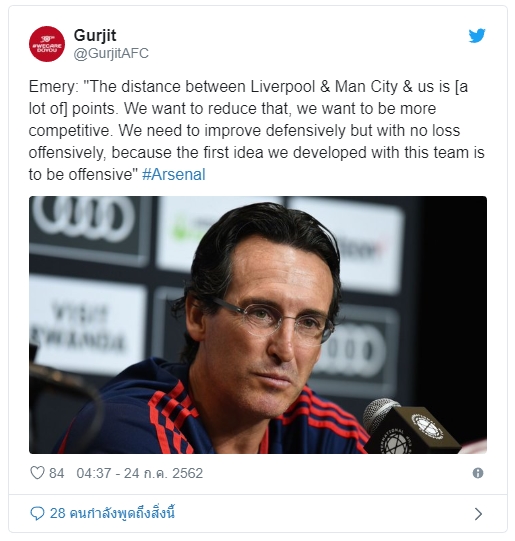 ให้ดีขึ้นกว่าฤดูกาลก่อนและปฏิเสธพูดถึงเรื่องการลุ้นแชมป์ในซีซันหน้า ไอเดียการทำทีมของผมก็ยังเหมือนเดิม ผมอยากให้ทีมอยู่ในตำแหน่งที่ดี มีการผสมผสานที่ดีระหว่างนักเตะรวมไปถึงประสบการณ์ดี ๆ ในทุกสถานการณ์ที่เกิดขึ้น สามารถเล่นเกมรุกและมีความดุดันมากขึ้น ผมชอบการใช้พลังงานในการเล่นและชอบที่จะทำให้ทีมมีความโดดเด่น เมื่อปีที่แล้วผมคิดว่าเราสามารถเอาชนะในบางเกมได้ซึ่งเราได้แสดงให้เห็นถึงปรัชญาการเล่นของเราในเกมของเรา ความดุดันมุ่งมั่นที่เราสร้างสรรค์ขึ้น 100% แต่บางครั้งเราก็ไม่สามารถทำแบบนั้นได้ เราจำเป็นจะต้องแก้ไขเกมรับให้ดีขึ้นแต่ก็ต้องไม่สูญเสียเกมรุกไปด้วยเพราะไอเดียหลักของทีมนี้ก็คือการเล่นเกมรุก บางครั้งมันก็เป็นเรื่องจริงที่เรามีปัญหาในแนวรับและการสร้างสมดุล ซึ่งเมื่อปีที่แล้วบางเกมเราก็เราสามารถสร้างสมดุลนี้ได้และความท้าทายก็คือต้องทำมันอย่างต่อเนื่องให้ได้ เอเมรี กล่าว